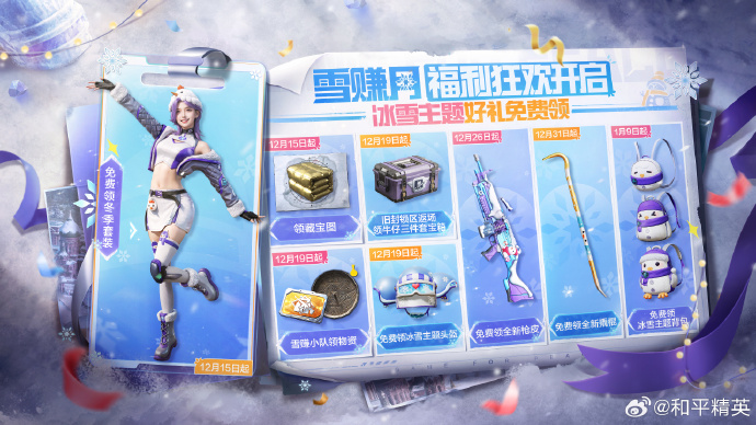 从 12 月 15 日到次年 1 月 9 日,这场跨越年末的冰雪福利盛宴覆盖外观、装备、道具全维度,零氪玩家只需每日花 30 分钟完成核心任务,即可将 5 套皮肤与海量物资收入囊中。赶紧邀约队友上号,在雪赚月 “薅” 到盆满钵满,驰骋冬日战场!
