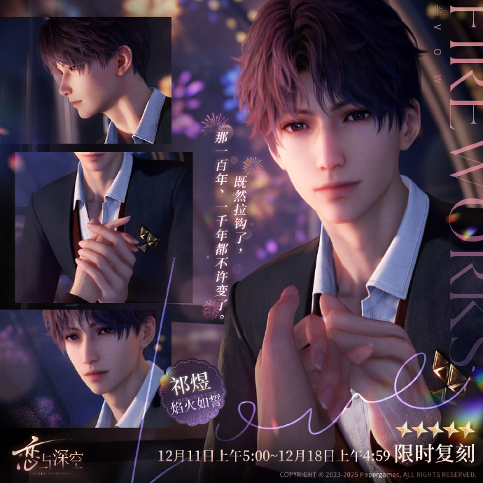 恋与深空祁煜焰火如誓 12.11 复刻 保底继承 + 绚烂焰礼助抽